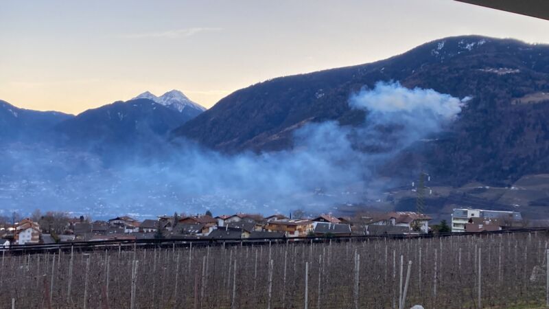 A fuoco il bosco sopra Marlengo, particolarmente difficili le operazioni di spegnimento a causa del forte vento
