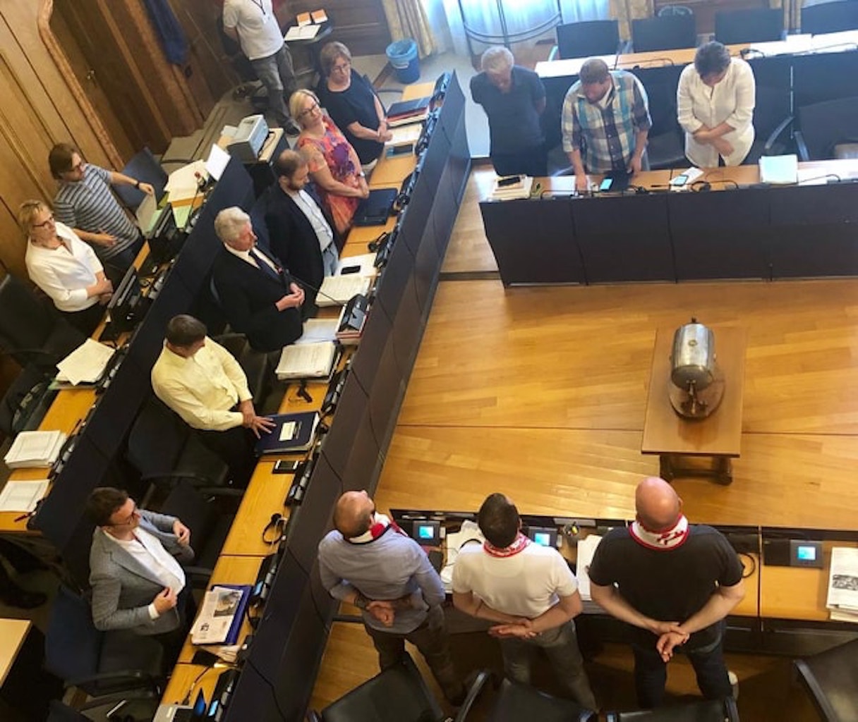 I consiglieri Bonazza, Ghizzi e Sandro Trigolo hanno indossato per l’occasione la sciarpa biancorossa, colori della città.