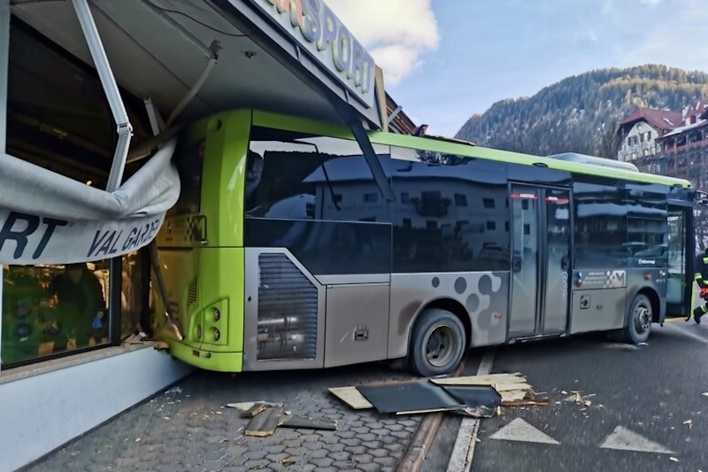 Santa Cristina in Val Gardena è stata teatro di un insolito incidente questa mattina. Un autobus di linea, fermo per una pausa, ha preso inaspettatamente il via, finendo dritto nella vetrina di un negozio di articoli sportivi. Le cause del sinistro sono ancora oggetto di indagine.
