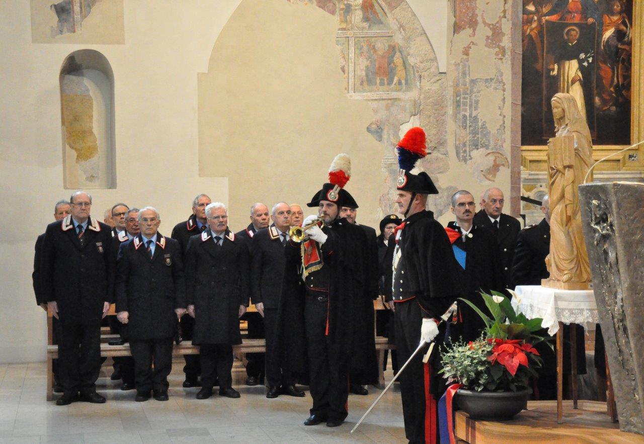 Ai lati dell’altare i vessilli dell’Associazione Nazionale Carabinieri e delle Associazioni Combattentistiche e d’Arma.
