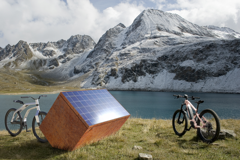 Utilizzando i green loader, è possibile offrire una fornitura base di energia, anche al turista occasionale che si avventuri in alto. Le colonnine possono ricaricare quattro bici contemporaneamente e circa 50 in una giornata grazie all’energia prodotta da un modulo fotovoltaico.