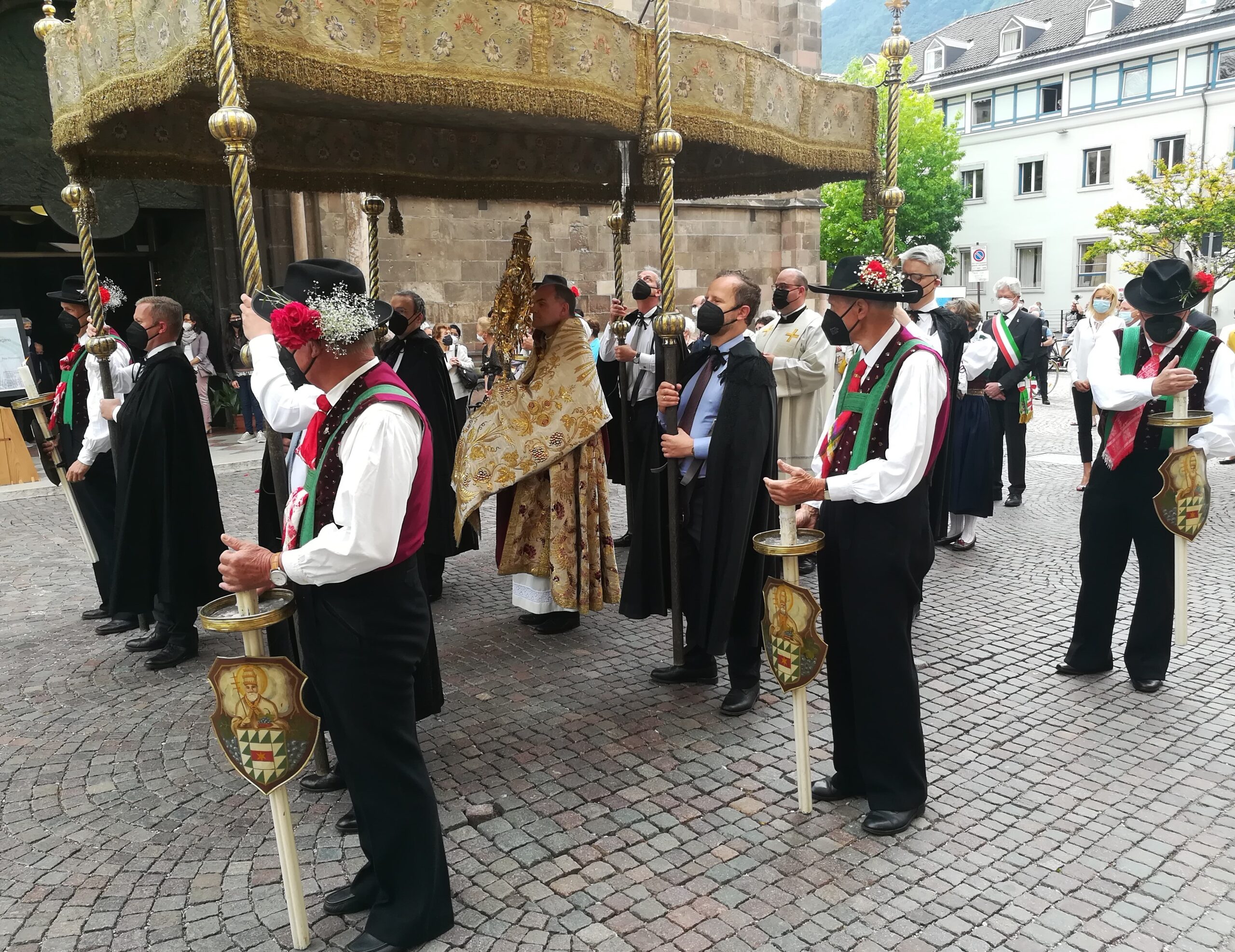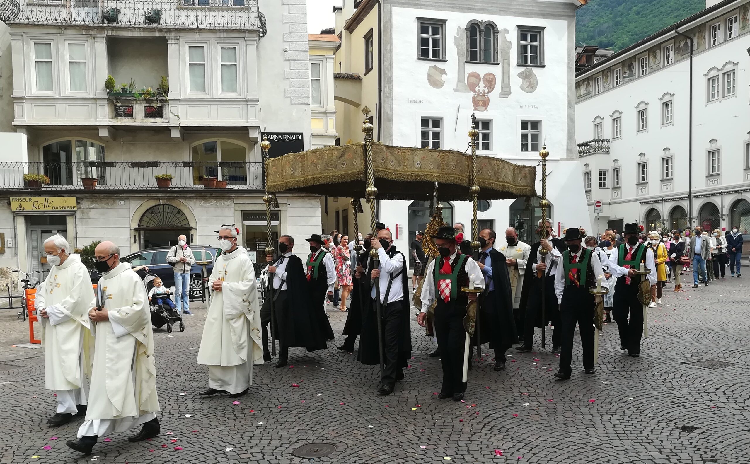 Nella solennità del Corpus Domini oggi (6 giugno) il vescovo Ivo Muser ha presieduto la celebrazione bilingue nel duomo di Bolzano, seguita dalla processione nel centro storico dopo un anno di stop causa Covid. Il vescovo ha esortato a rimettersi in strada “e andare avanti tutti assieme, rispettando sempre il passo del vicino: è questo il simbolo di una comunità eucaristica in cammino, attenta ai bisogni di tutti, capace di accogliere tutti“. L’ostia consacrata è stata portata in processione sotto un baldacchino ed esposta alla pubblica adorazione. Alla processione, che si è svolta rispettando le misure precauzionali anticontagio e si è conclusa con la benedizione finale in piazza Walther, hanno partecipato numerosi fedeli