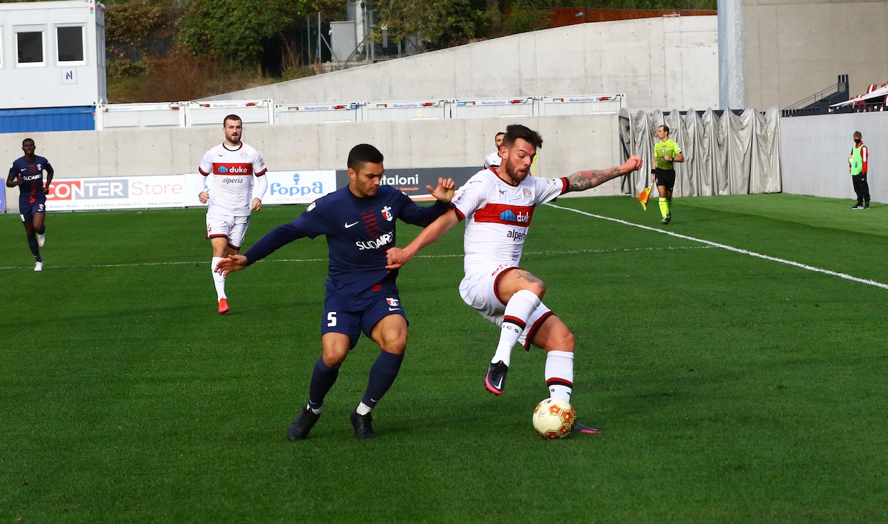 L’FC Südtirol grida al gol al 36’: punizione da limite di Greco, palla sulla traversa rimbalzo secondo l’arbitro in campo, tra le proteste biancorosse. Al 29’ il pareggio: dalla bandierina di destra batte Greco, mischia davanti a Sibi, l’ultimo a toccare da due passi è Magnaghi per il 2-2 e al secondo minuto di recupero segna Malomo, ma l’assistente rileva il fuorigioco.