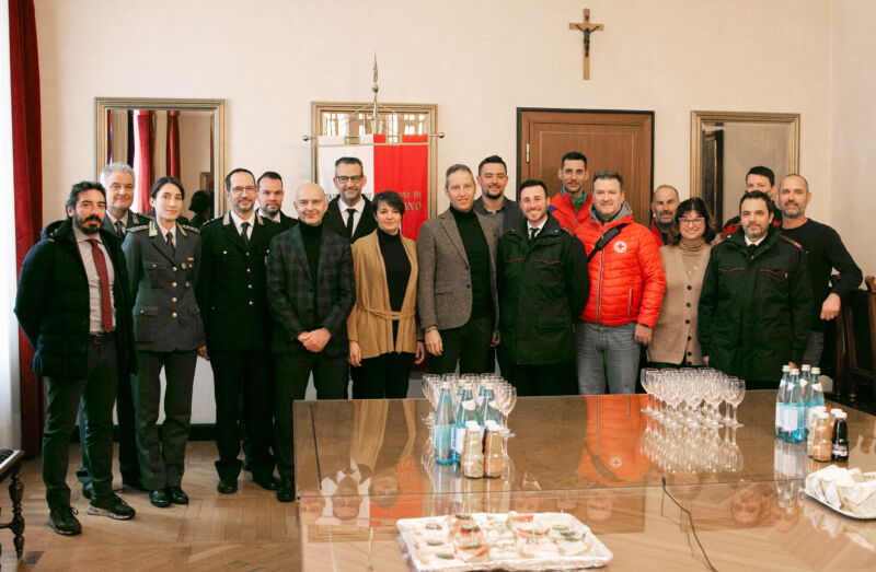 Forze dell’ordine e unità di soccorso ricevute in municipio a Merano