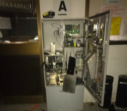 Accortisi del sopraggiunge degli agenti i malviventi si sono dati alla fuga. Sul posto la Polizia ha ritrovato la pietosa scena della cassa automatica divelta nel fallimentare tentativo di asportarne l’incasso.