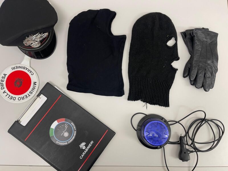 Durante l’ispezione del veicolo, i militari hanno fatto una scoperta che ha immediatamente sollevato ulteriori sospetti: all’interno dell’auto era presente un lampeggiante blu, simile a quelli riservati alle forze dell’ordine, oltre a un secondo passamontagna. Interrogato sul posto, il 24enne ha giustificato la situazione spiegando di essere coinvolto nella realizzazione di un video musicale, in cui avrebbe interpretato il ruolo di un agente di polizia.