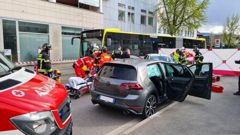 Grave schianto tra due auto a Bolzano, coinvolto anche un autobus: sette feriti