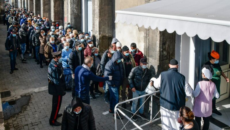 Dal XXI Rapporto Caritas su povertà ed esclusione sociale, intitolato “L’anello debole”, emerge che “la povertà assoluta nel 2021 conferma i suoi massimi storici toccati nel 2020, anno di inizio della pandemia di Covid”. “Le famiglie in povertà assoluta risultano 1.960.000, pari a 5.571.000 persone (il 9,4% della popolazione residente). L’incidenza si conferma più alta nel Mezzogiorno (10% dal 9,4% del 2020), mentre scende in misura significativa al Nord, in particolare nel Nord-Ovest (6,7% da 7,9%)”.