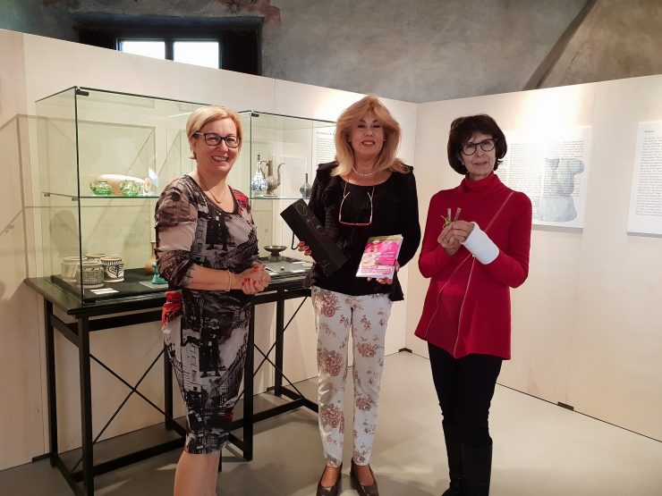 Ad accogliere festosamente il millesimo visitatore, l’Assessore comunale Monica Franch e la curatrice dell’esposizione Laura Piovesan Schütz.