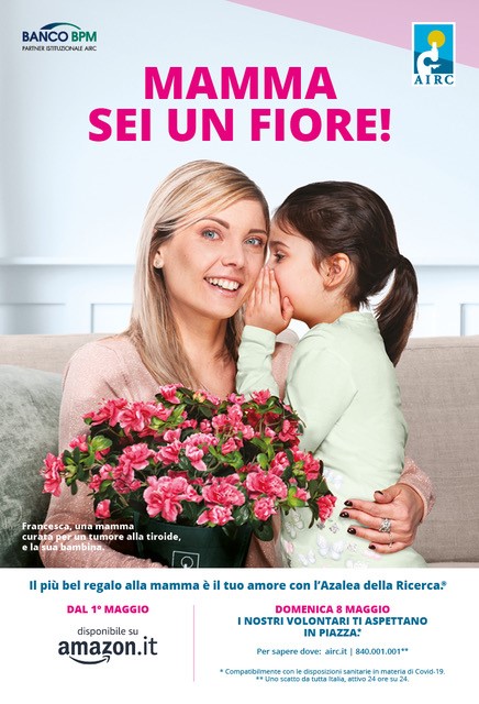 Da 38 anni l’Azalea della Ricerca di Fondazione AIRC è il simbolo della Festa della mamma, un fiore speciale da regalare a tutte le donne, una preziosa alleata per la salute al femminile che nell’arco degli anni ha permesso di raccogliere oltre 280 milioni di euro e ai migliori scienziati oncologici di lavorare senza interruzioni, anche nel lungo periodo di emergenza sanitaria Covid19, con l’obiettivo di diagnosticare più precocemente tutte le forme di cancro e di curare con maggiore efficacia tutte le pazienti.