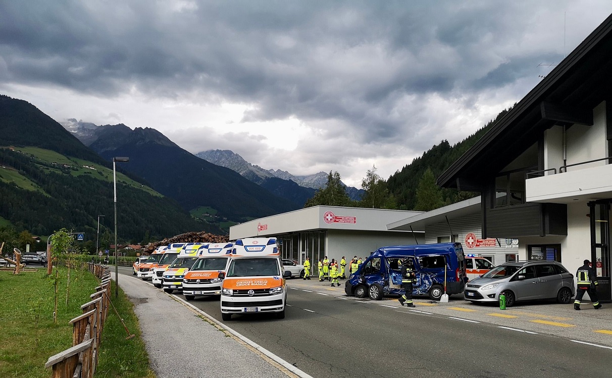 Nella serata di ieri, 29 luglio, è stato lanciato l’allarme per un violento incidente tra un minibus e un’auto davanti alla sede della Croce Bianca di Luttago. Nell’impatto sono 15 le persone rimaste coinvolte e prese immediatamente in cura dal soccorso sanitario.