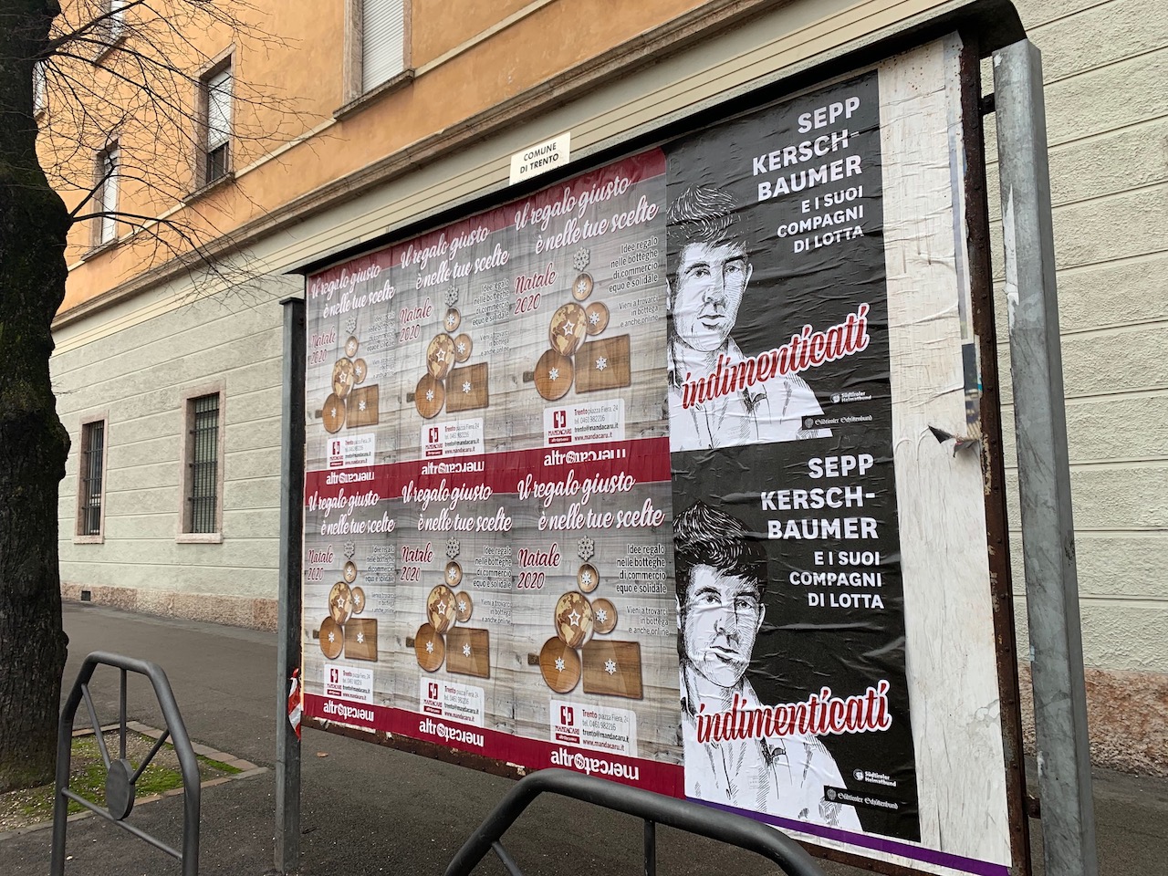 Dopo la diffusione in diverse zone della provincia di Bolzano, sono comparsi anche in Trentino (in una inedita versione solo in lingua italiana) i manifesti inneggianti alla figura dei terroristi sudtirolesi, Sepp Kerschbaumer ma anche i suoi accoliti, ossia coloro che scatenarono la tempesta di fuoco e di bombe sull’Alto Adige nella notte dei fuochi in cui morì lo stradino Giovanni Postal di Grumo e che aprì la strada alla ancora più cruenta stagione successiva.