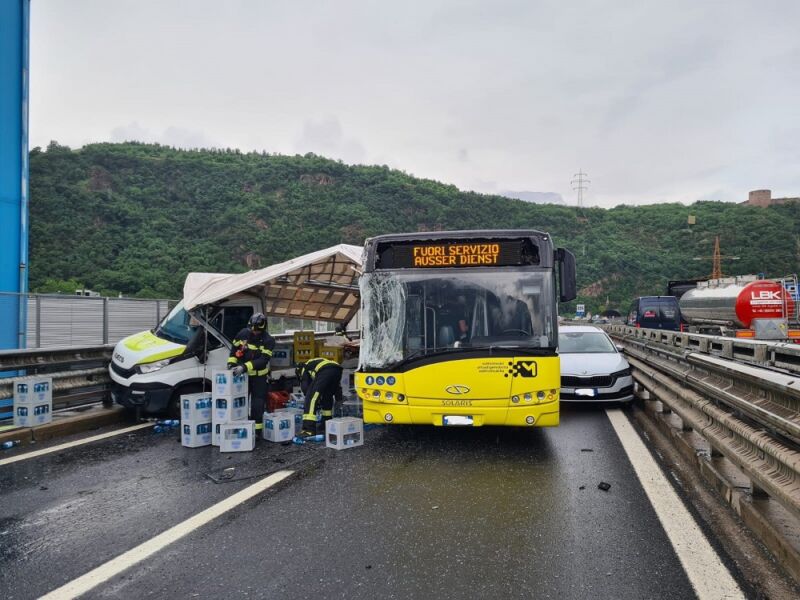 Il Corpo Permanente dei Vigili del Fuoco di Bolzano sono intervenuti per le operazioni di recupero e pulizia. Stando alle ultime informazioni, un bus di linea avrebbe tamponato un furgone che, a causa di un guasto, era rimasto bloccato sulla corsia di marcia.