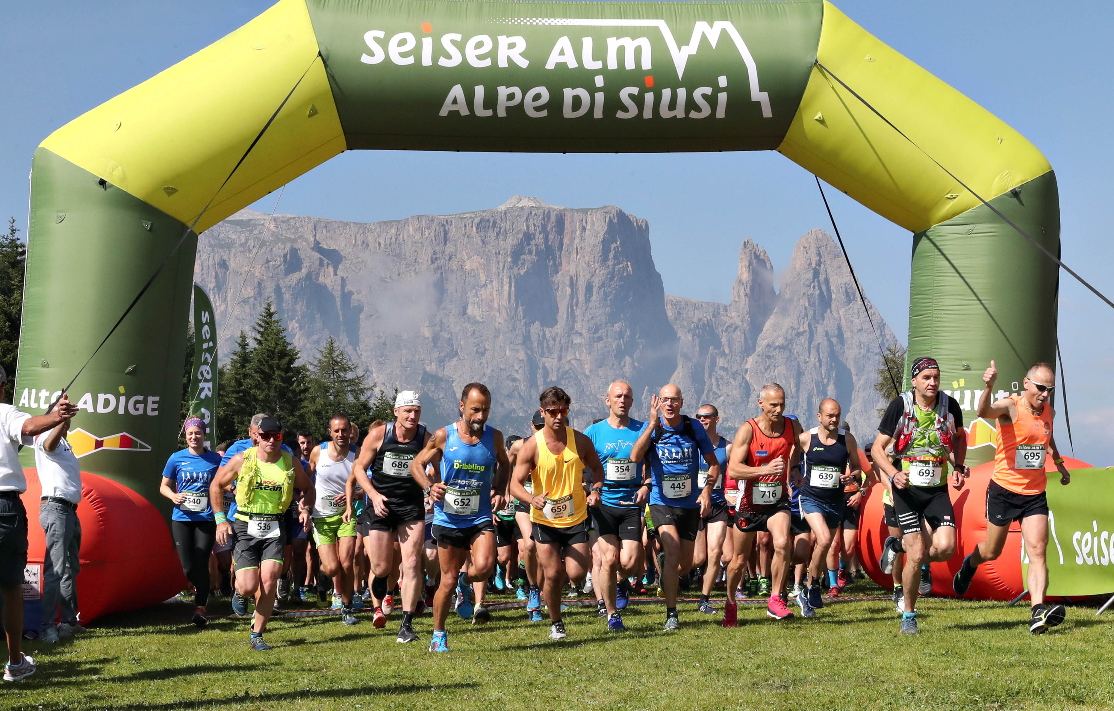 La temperatura era gradevole sin dalla mattinata, con le cime che sullo sfondo abbracciano l’Alpe di Siusi ad illuminare la partenza. Le nuvole hanno poi fatto capolino rendendo meno calda la giornata e di conseguenza più piacevole la corsa. Il ritorno del bel sole è poi coinciso con gli arrivi dei primi corridori, capaci di completare i 21 chilometri e i 601 metri di dislivello di gara in poco più di un’ora.