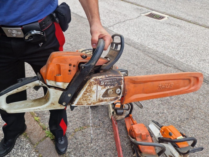 Durante la perquisizione, sebbene la bicicletta rubata non sia stata trovata, i militari hanno rinvenuto all’interno di un’autovettura otto motoseghe di varie marche, una falciatrice a motore, due trapani a batteria, due demolitori a batteria e numerose batterie con relativi caricatori, pronti per essere trasportati fuori dal paese. Alcune delle motoseghe rinvenute sono risultate rubate a Laion, e sono in corso ulteriori accertamenti attraverso i contatti con i rivenditori per risalire agli altri proprietari attraverso i seriali degli utensili.
