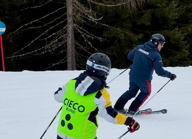Da molti anni ormai l’Arma dei Carabinieri ha instaurato una salda collaborazione con l’associazione “Sport abili” di Predazzo consentendo a numerosi ragazzi non vedenti di poter vivere la passione dello sci in Trentino Alto Adige. I Carabinieri, formati presso il Centro Addestramento Alpino Carabinieri di Selva di Val Gardena, in queste giornate dedicate, “guidano” lo sciatore attraverso un auricolare.