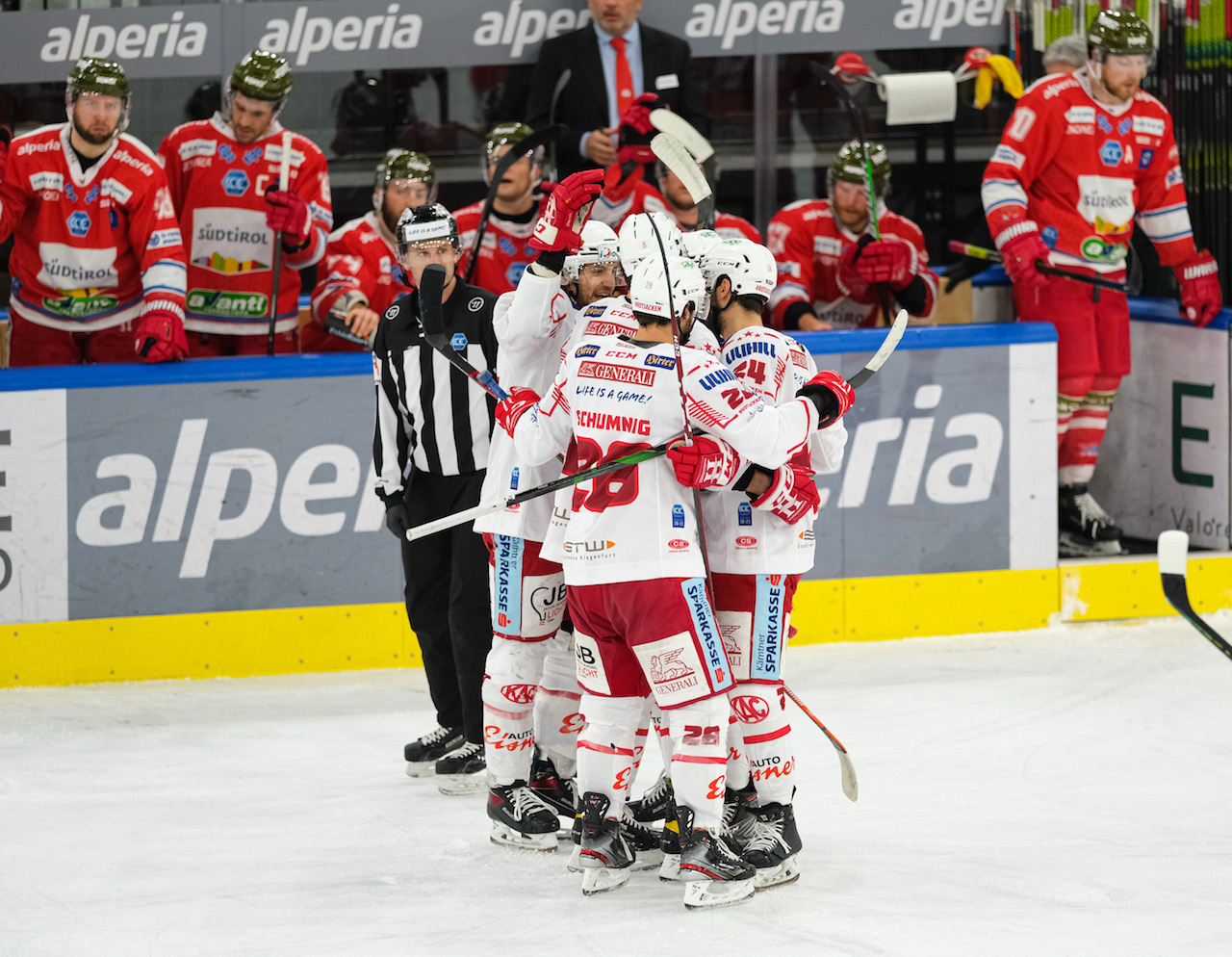 Decisivo infine il goal vittoria nel terzo tempo di Dennis Robertson. Tre punti che consentono ai Foxes di mantenere il primo posto e di allungare a +5 proprio sul Klagenfurt: con due partite ancora da giocare e con il Fehervar, sconfitto a Dornbirn, fuori dalla lotta per il primo posto, ai biancorossi basta un punto per conquistare matematicamente la vetta della classifica e la qualificazione alla prossima Champions Hockey League.