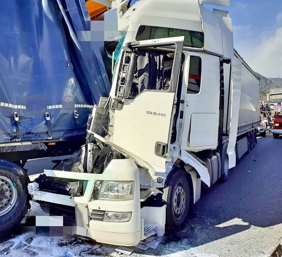 Tamponamento tra 3 camion in A22 a Varna: due conducenti incastrati tra le lamiere