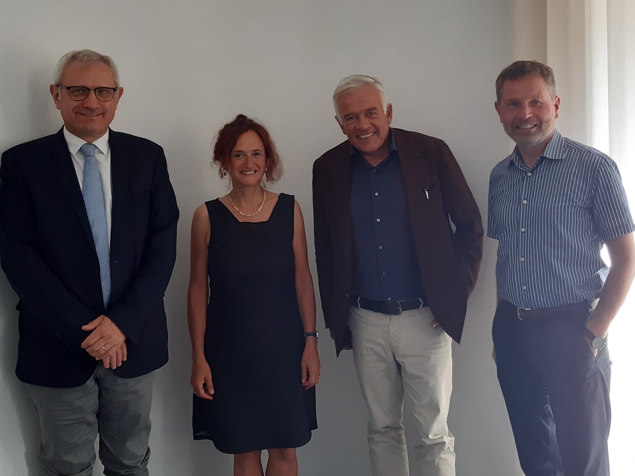 In un incontro tra il neoeletto presidente di Assoimprenditori Alto Adige, Heiner Oberrauch, e il Gruppo Verde in Consiglio Provinciale si è parlato di obiettivi e idee comuni. Presenti i due consiglieri provinciali Brigitte Foppa e Hanspeter Staffler, Heiner Oberrauch e il direttore di Assoimprenditori Alto Adige, Josef Negri.