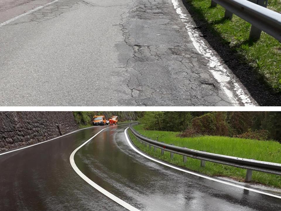 Sono stati asfaltati complessivamente due chilometri della strada che porta in val Gardena, anche a Roncadizza e a Ortisei.