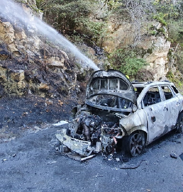 All’arrivo dei vigili del fuoco, il mezzo era già stato completamente avvolto dalle fiamme, tanto che il rogo rischiava di propagarsi alla vegetazione circostante.