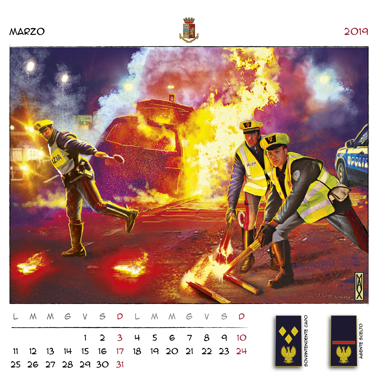 Spero che queste tavole accompagnino in modo piacevole le vostre giornate, con l’augurio di disegnare, tutti insieme, uomini e donne della Polizia di Stato, cittadine e cittadini del nostro Paese, un radioso 2019, consapevoli della nostra unicità nella diversità”.