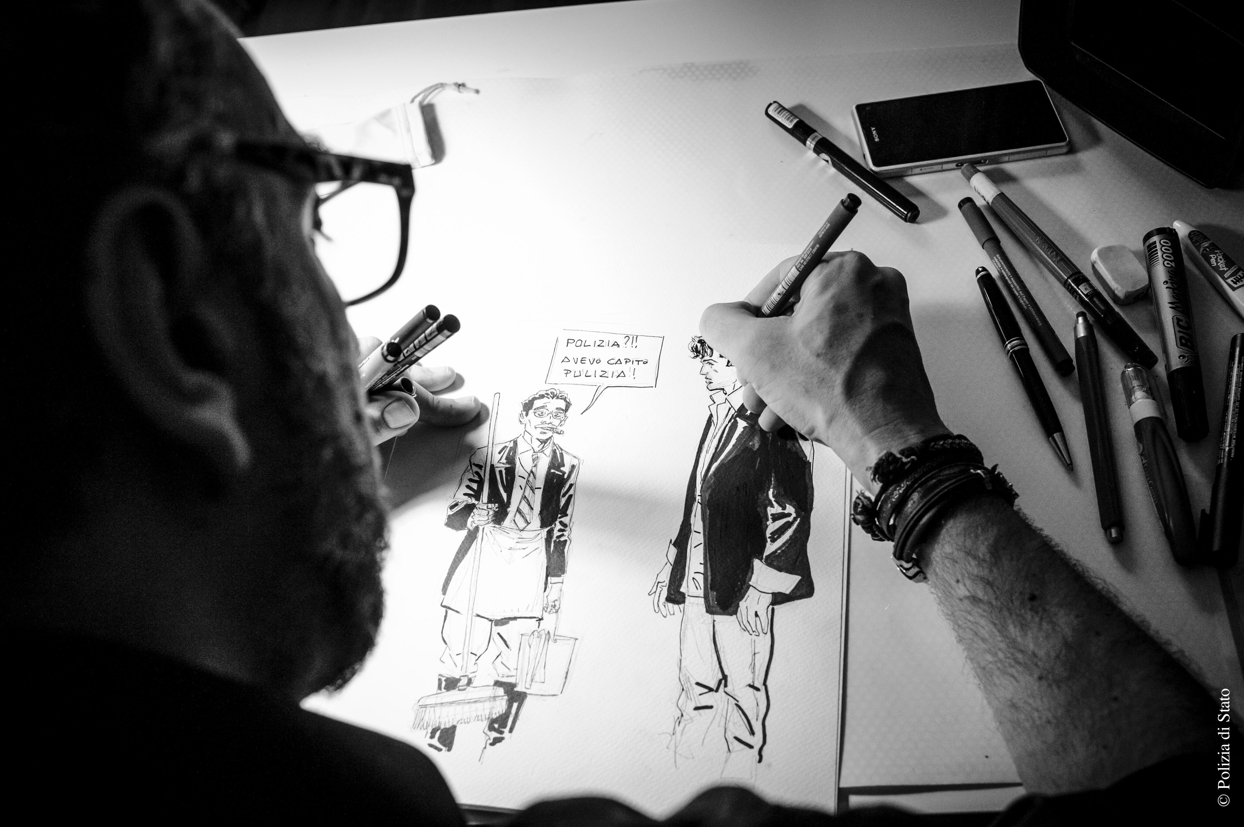 Dodici illustratori italiani, dunque, che hanno lavorato insieme a noi per immaginare, ciascuno con il proprio peculiare tratto stilistico, dodici momenti dell’attività di donne e uomini della Polizia di Stato, ognuno con un preciso riferimento a un nuovo distintivo di qualifica.
