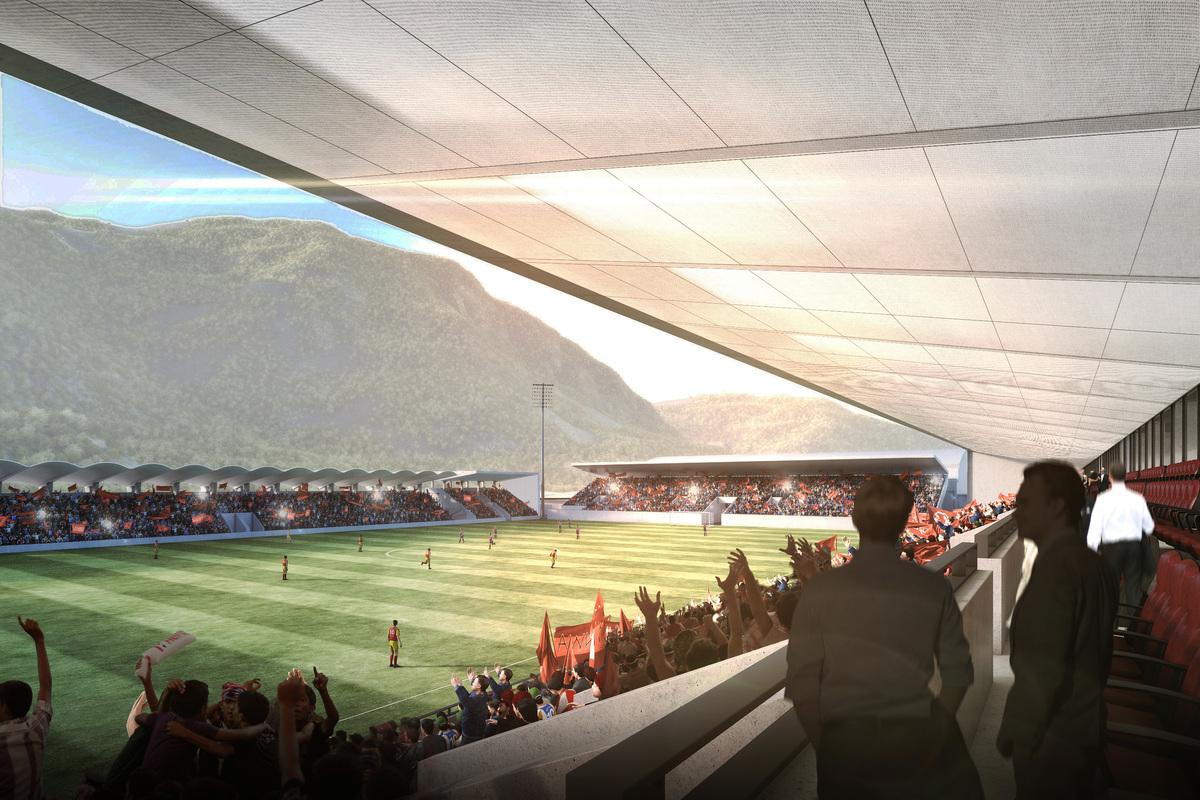 Per il Druso si è optato per un impianto senza corsie tra campo sportivo e le tribune che offrisse un’atmosfera più intima e vantaggi economici per i gestori grazie agli spazi differenziati risultanti.