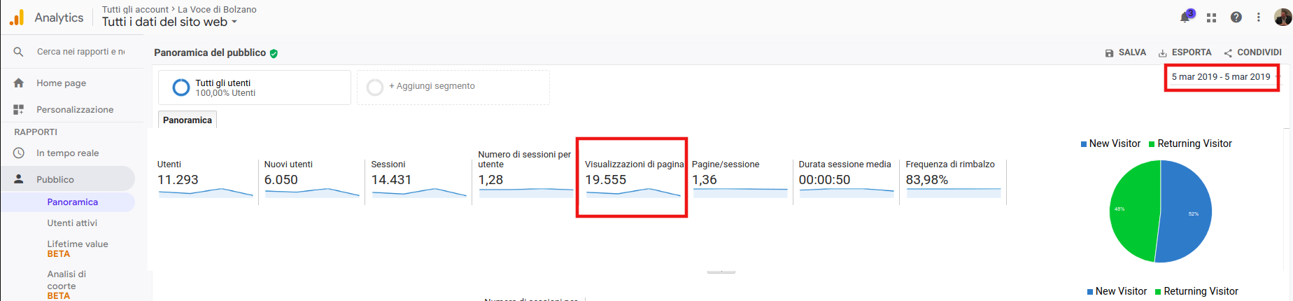 La certificazione di Google analytics dei dati di ieri 5 marzo 2019