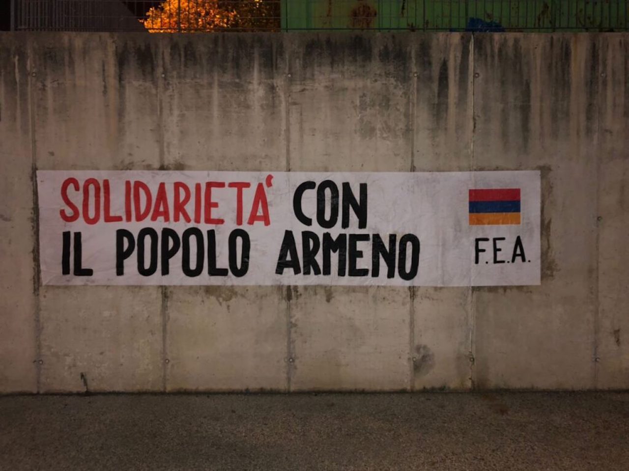Questa mattina le città d’Italia, da nord a sud, comprese Bolzano, Trento e Riva del Garda, si sono svegliate tappezzate di striscioni di solidarieta con il popolo dell’Armenia che da settimane subisce l’aggressione delle milizie pro Azerbaigian.