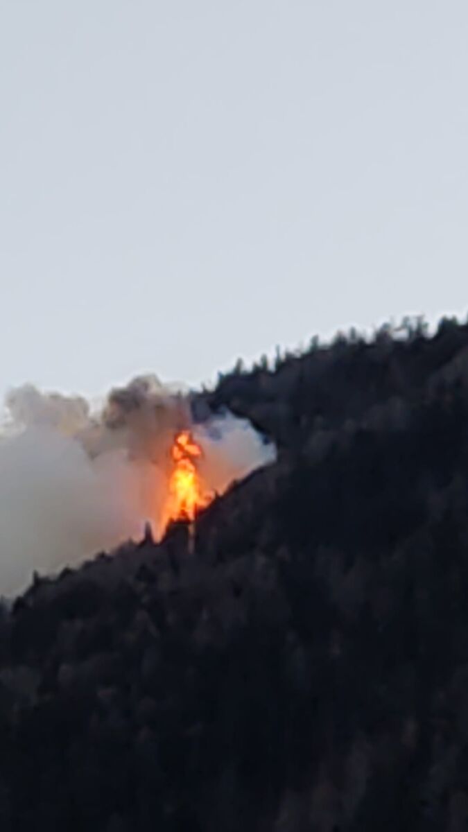 A fuoco il bosco sopra Marlengo, particolarmente difficili le operazioni di spegnimento a causa del forte vento