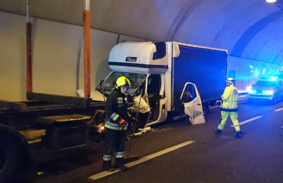 A22, Bressanone: furgone tampona camion in galleria. Un ferito