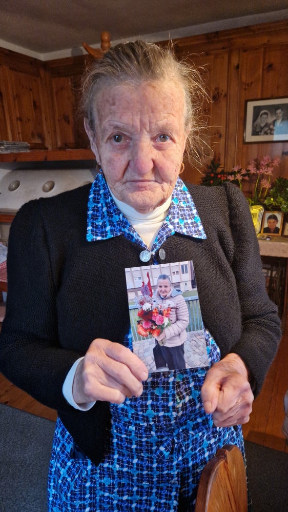 Anna Schweigkofler, 89 anni, contadina di Barbiano, sembra più giovane rispetto alla sua età anagrafica: ha mantenuto intatte lucidità e allegria. Mostra orgogliosamente una foto in cui è ritratta con un enorme mazzo di fiori, mentre è seduta sulla panca della sua stube rivestita di legno, nell’angolo proprio sotto al crocifisso.