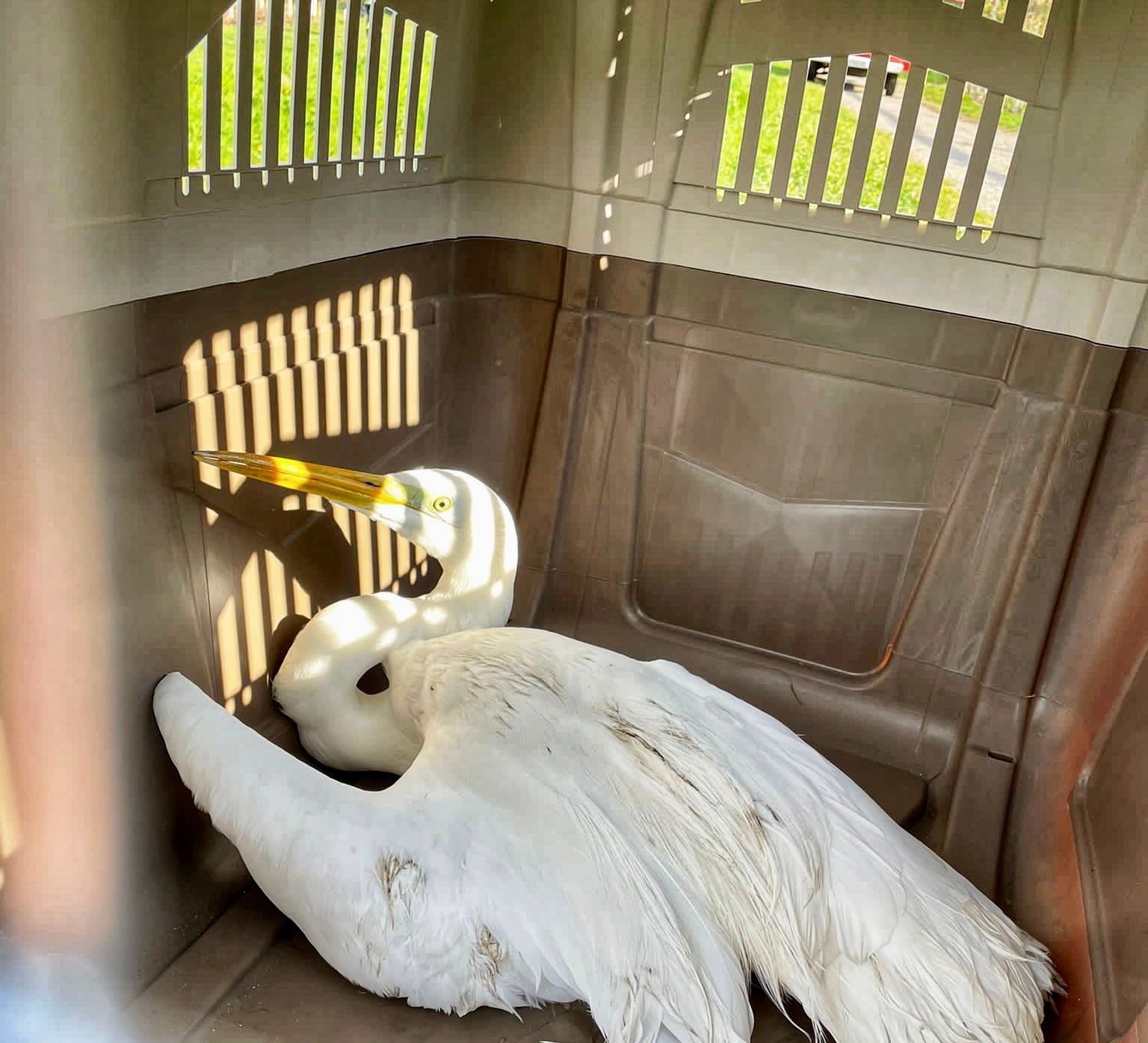 Airone ferito finisce in un canale: l’animale salvato dai vigili del fuoco di Laives