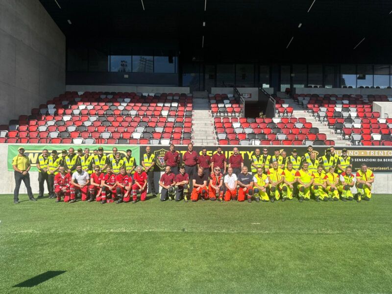 Obiettivo dell’esercitazione era testare ed eventualmente migliorare il lavoro di squadra fra diverse organizzazioni presenti in loco, tenendo in considerazioni le particolarità dello Stadio Druso.