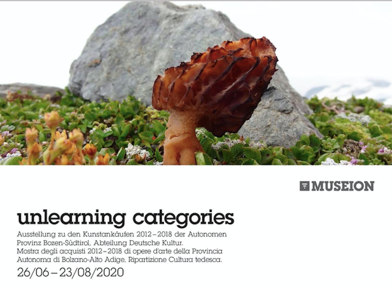 Sal 26 giugno al 23 agosto, il Museion e la Ripartizione cultura tedesca della Provincia presentano “Unlearning categories”, una mostra e catalogo sulle opere d’arte acquistate dalla Provincia di Bolzano, Ripartizione Cultura tedesca, dal 2012 al 2018.