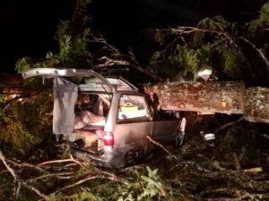 “Il conducente ha avuto fortuna nella sfortuna ed è rimasta senza ferite” hanno detto i Vigili del Fuoco e i volontari che sono accorsi subito sul posto. La colpa della caduta dell’albero è stata del forte vento che c’era ieri sera. La macchina è uscita distrutta all’impatto.