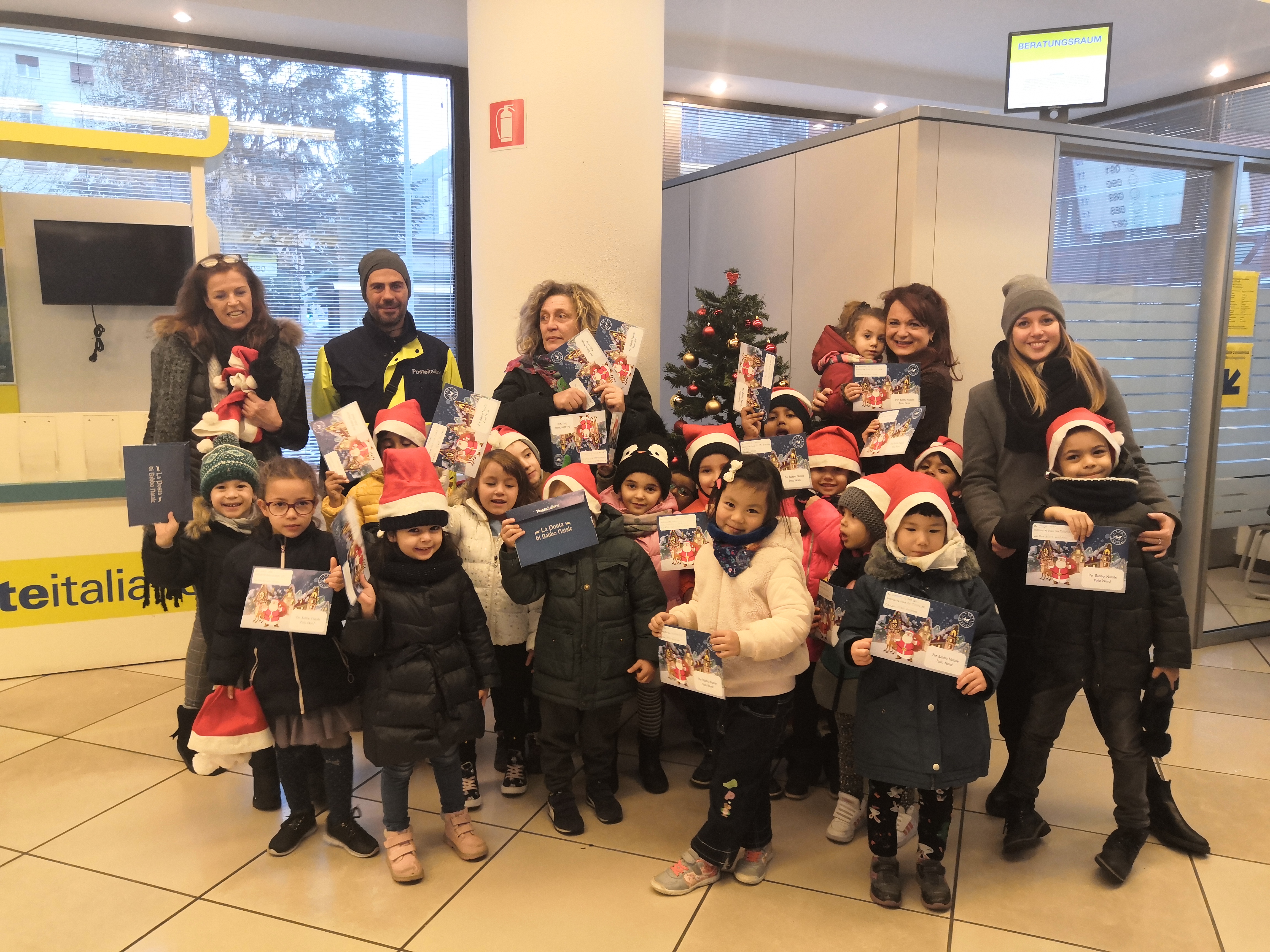Per questo Poste Italiane ha organizzato un evento presso l’Ufficio Postale di Piazza Adriano a Bolzano coinvolgendo 18 bambini della Scuola dell’Infanzia Biancaneve.