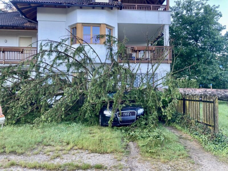 Alto Adige flagellato dal maltempo, alberi abbattuti, grandine e forte vento