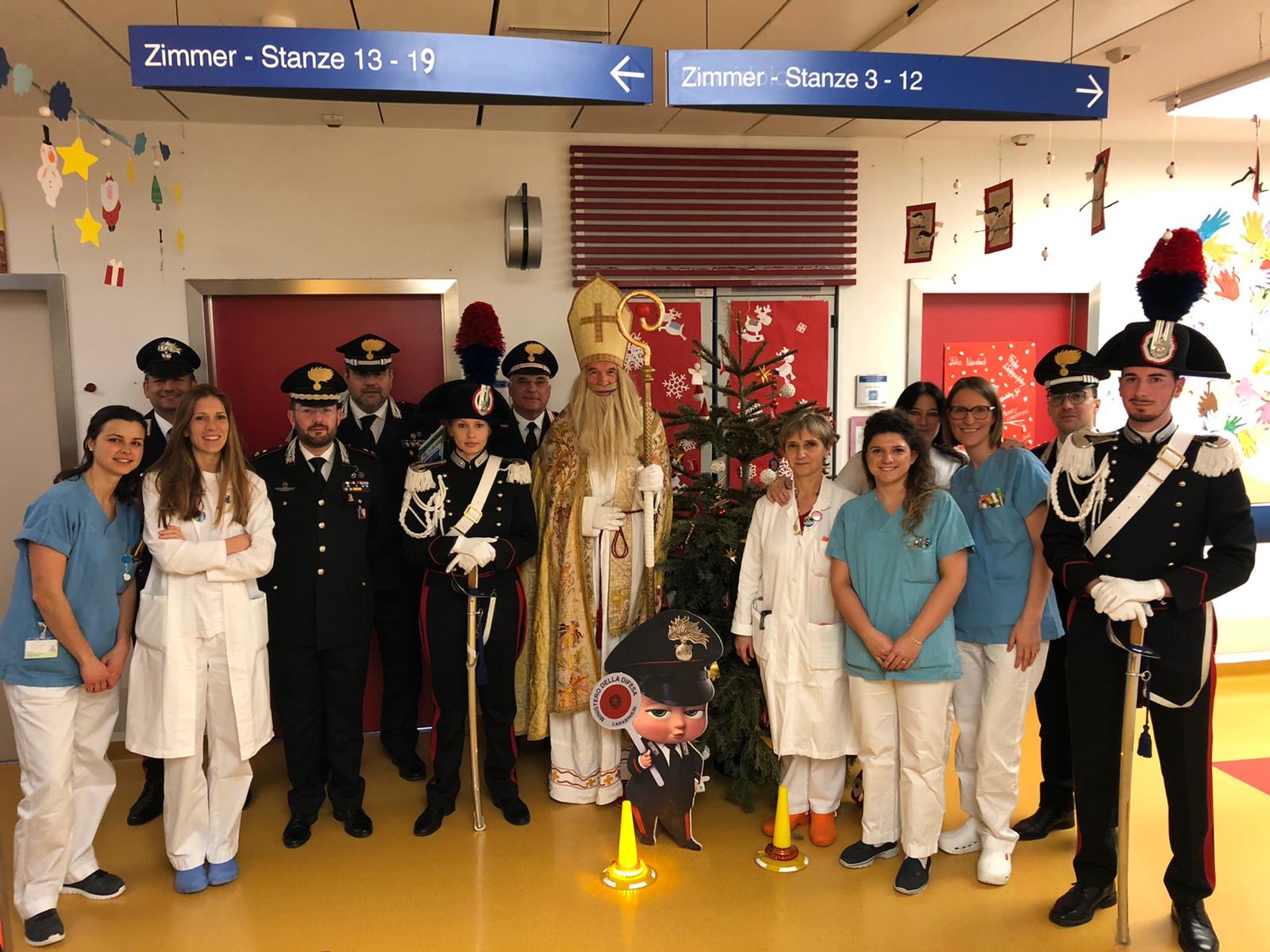 Mattinata diversa per i Carabinieri di Bolzano, che insieme a San Nicolò hanno visitato il reparto di pediatria dell’Ospedale San Maurizio consegnando dei libri e degli album da colorare ai bambini ricoverati presso il reparto.