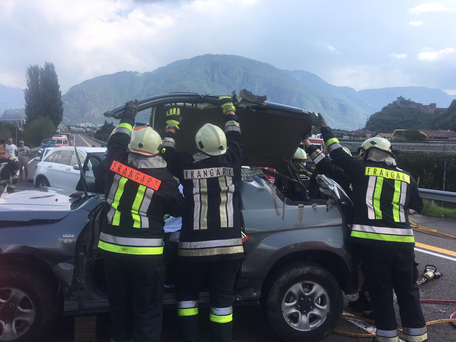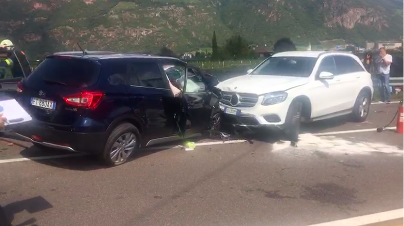 Incidente stradale verso le ore 13.15 sulla strada statale che da Bolzano porta ad Appiano. Per cause ancora in via di accertamento, due auto si sono tamponate.