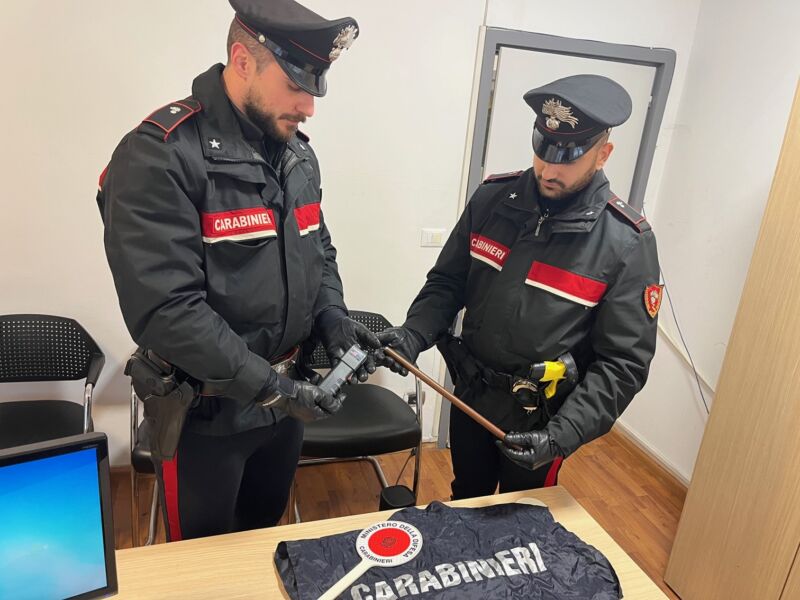 Prima che potesse eventualmente farne uso, i Carabinieri hanno sequestrato un dispositivo elettrico del tipo taser e un tubo in ferro di circa 30 cm.