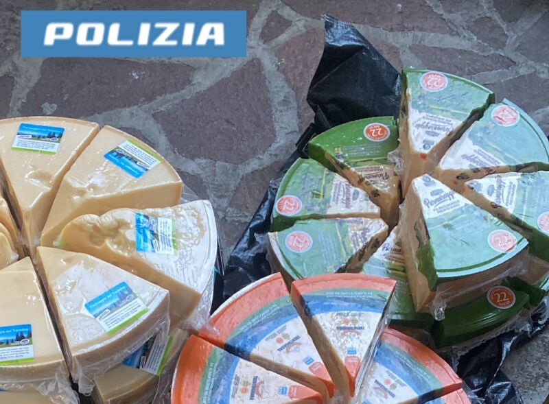 Gli agenti hanno quindi sequestrato numerosi prodotti alimentari, tra cui 56 confezioni di formaggio, con un peso complessivo di quasi 135 kg, oltre a 100 bottiglie di vini, liquori vari e olio di oliva. Il valore commerciale dei beni confiscati è stimato in almeno 4.000 euro.