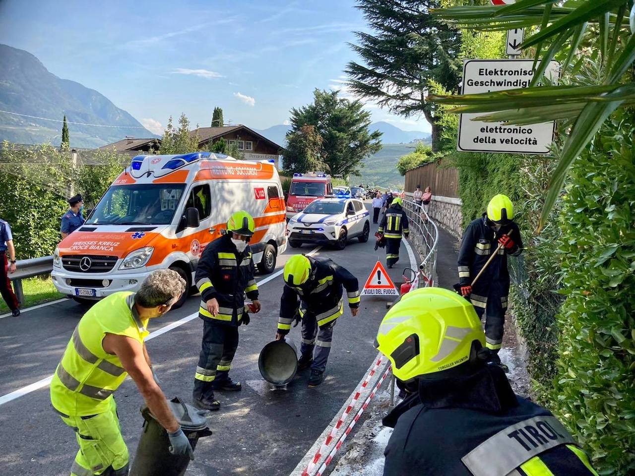Sul posto la croce bianca di Merano, i vigili del fuoco di Tirolo e la polizia municipale. Solo lilevi ferite per il guidatore, trasportato all’ospedale per accertamenti.