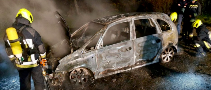 Auto in fiamme nel bosco a Varna: intervengono i vigili del fuoco