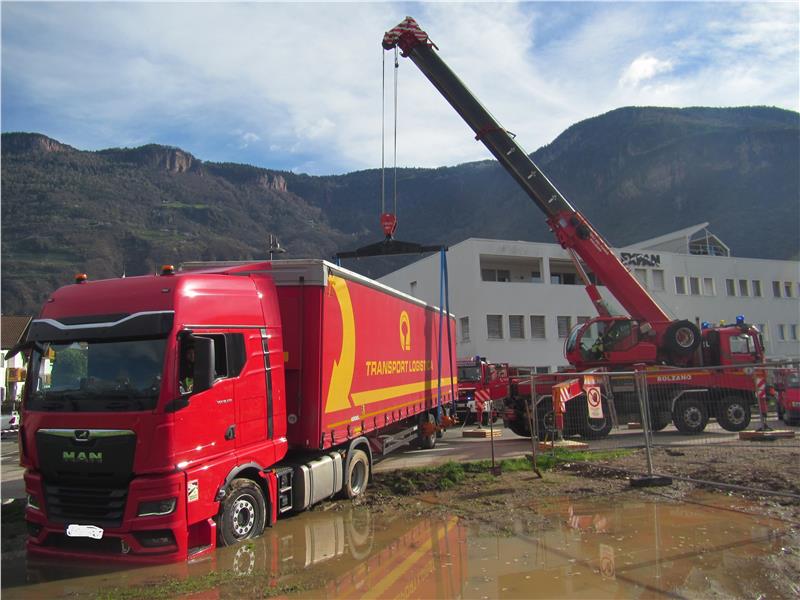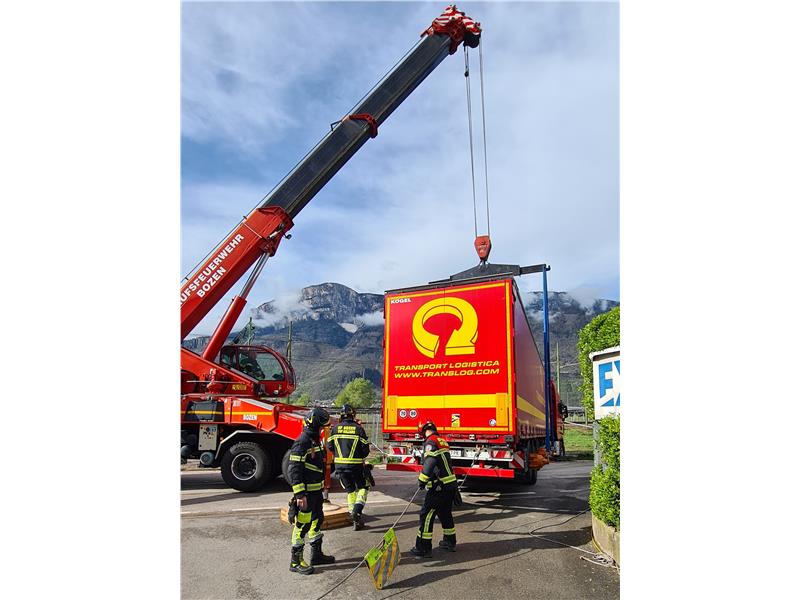 Le squadre del Corpo Permanente dei Vigili del Fuoco di Bolzano sono giunte rapidamente sul posto, seguite dai loro colleghi Volontari di Terlano. La situazione ha richiesto l’uso di un’autogru per liberare il semirimorchio e sgomberare la via.