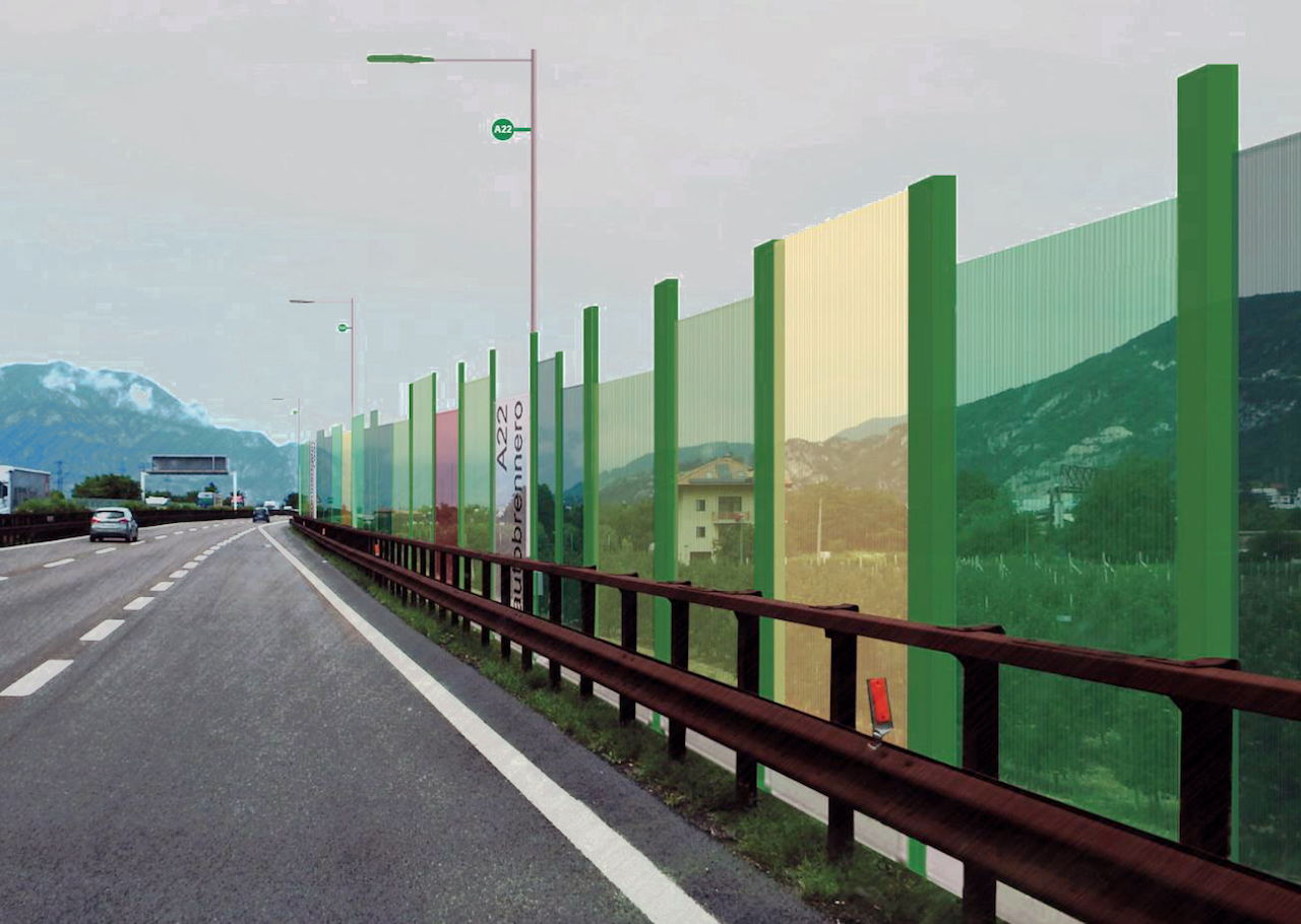 Il Direttore Tecnico Generale, Carlo Costa, ha riassunto così il progetto: “L’obiettivo è quello di realizzare una barriera “dinamica”, integrata e attiva, la cui fisionomia architettonico-infrastrutturale si leghi al tema, mai statico, della natura circostante. Le barriere saranno caratterizzate da pannelli cromatici ed elementi serigrafici, con scritte che richiamano sia i luoghi che la geografia dell’attraversamento. Si conferirà in tal modo un’identità al tratto percorso. Tale tipologia di barriera sarà sviluppata anche in Alto Adige, in località Velturno, a sud di Bressanone”.