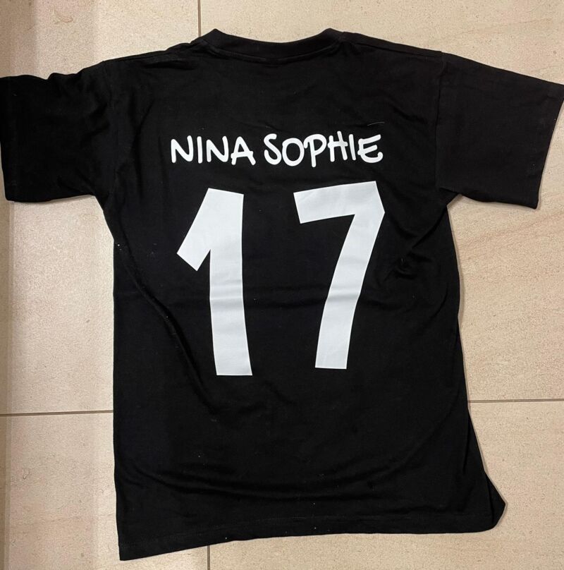 La piccola Nina Sophie, di comune accordo con la sua società sportiva, ha comunque voluto, con quanto raccolto per ricomprare i palloni, fare qualcosa per i propri compagni, acquistando delle t-shirt personalizzate da impiegare durante gli allenamenti.