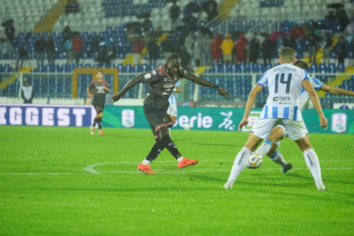 La ripresa si apre sotto una pioggia battente e con ritmi decisamente più elevati. Dopo appena 2 minuti, Merkaj sfiora il vantaggio con un destro potente in area, ma Desplanches si oppone in uscita. Al 19’ è il Pescara ad avere una clamorosa occasione: Letizia sfonda a sinistra e serve Merola, ma Adamonis compie un intervento straordinario che tiene in vita i biancorossi.