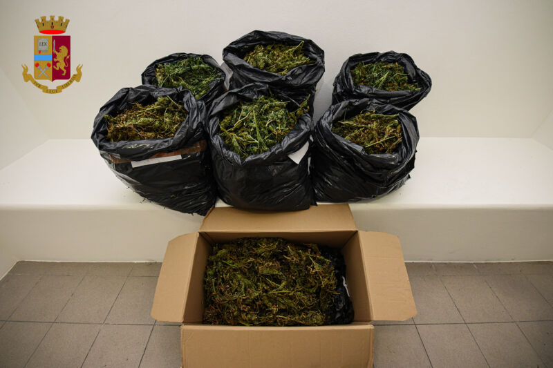 La successiva attività consentiva di rinvenire e sequestrare, all’interno di un box nella disponibilità dell’uomo, quasi 30 kilogrammi di marijuana. In considerazione di quanto accertato, i poliziotti hanno proceduto al suo arresto e lo hanno associato presso la locale Casa Circondariale.